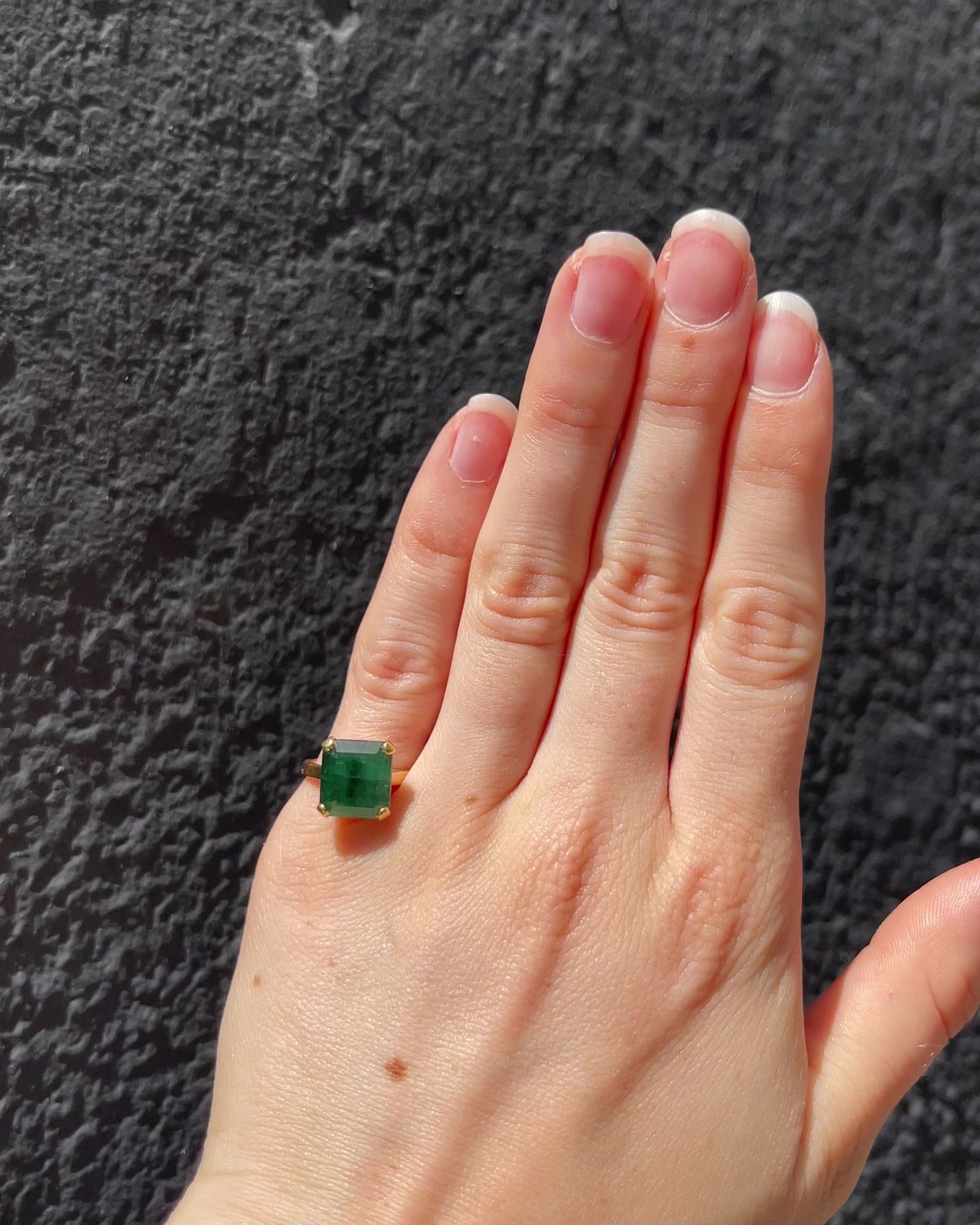 Shay est une bague cocktail en or jaune 18 carats, sublimée par une émeraude exceptionnelle de 5.40 carats. Une pièce rare et lumineuse des années 1960, portée par un design minimaliste qui met pleinement en valeur la pierre. Ornée du poinçon tête d’aigle, symbole de qualité de l’or français.