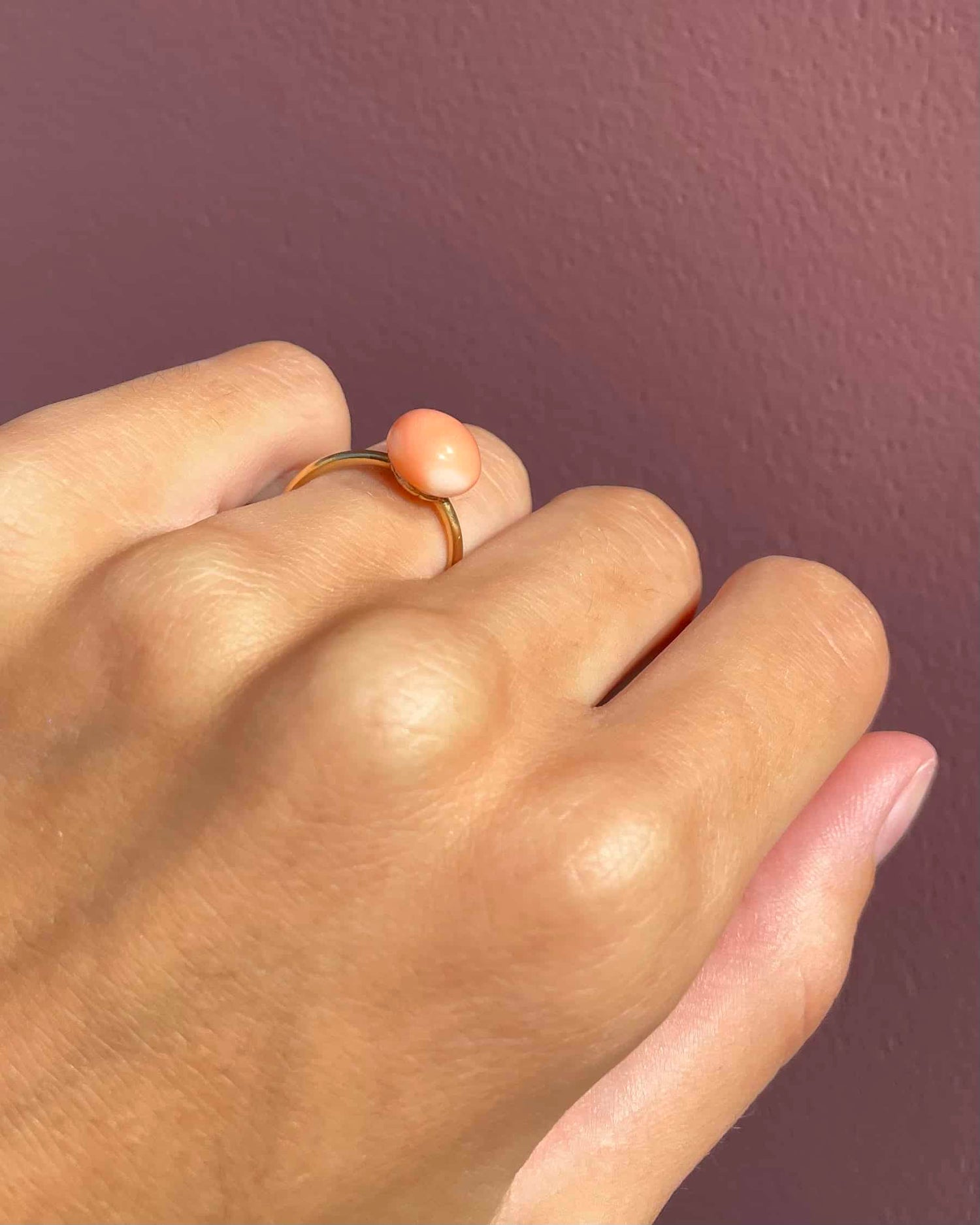 Bague Solitaire Corail Peau d'Ange "Aleita"