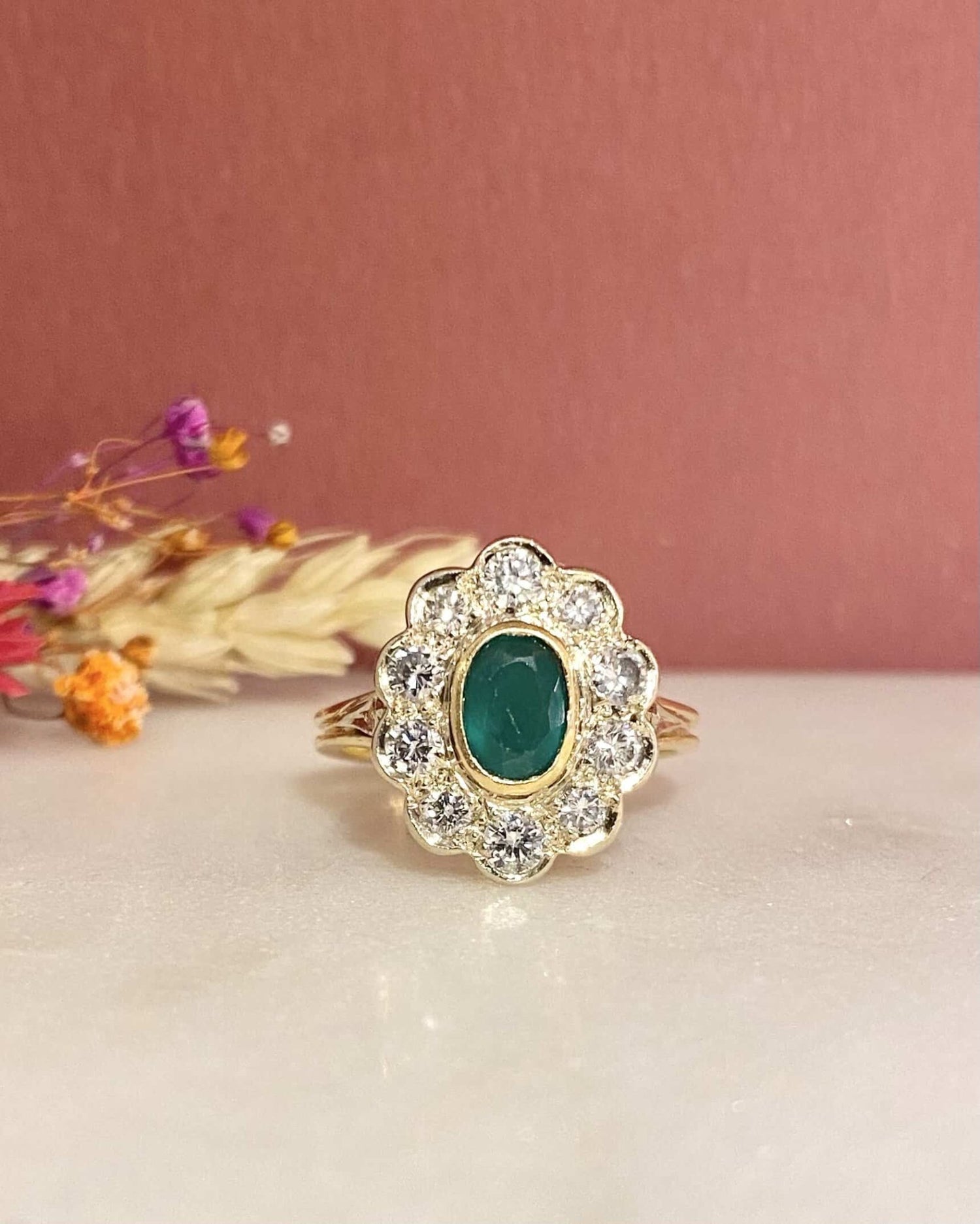 Bague Marguerite Émeraude 0.56 carat & Diamants "Jocelyne"