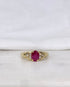 Délicatement façonnée en or jaune 18 carats, elle met en lumière un merveilleux rubis rouge de 1.10 carat.