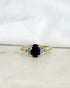 "Zoé" est une ravissante bague vintage de style trilogie, façonnée en or jaune et gris 9 carats. En son cœur trône un sublime saphir de 1.40 carat, au bleu intense. Il est épaulée de 6 diamants de 0.12 carat au total.