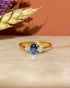 Cette création délicate est centrée d’un merveilleux saphir bleu roi de 0.50 carat origine probable Ceylan, épaulé de deux diamants taille brillant de 0.14 carat au total qui viennent illuminer l’ensemble.