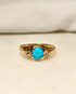 La turquoise, au bleu profond et apaisant, confère à cette bague une allure élégante et intemporelle. Le sertissage délicat des diamants vient rehausser l'éclat de l'ensemble, créant une pièce d'exception.