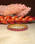 Travail d’exception de maître joailler français des années 1970, son anneau finement travaillé est serti de trente rubis, d’une jolie couleur framboise, pour un total d’environ 1 carat.