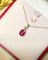 Son rubis framboise de 2 carats est sublimé par sa bélière ornée de quatre diamants brillant pour un total de 0.04 carat