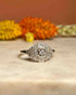 Son incroyable plateau travaillé mains est serti d’un diamant central dans un entourage de diamants taille rose.