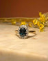 En son centre se trouve un magnifique saphir bleu aux nuances de vert d’1.70 carat.